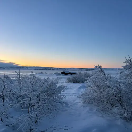 Je trekt door de uitgestrekte sneeuwvlaktes van Fulufjället, ver weg van de bewoonde wereld. Met sneeuwschoenen aan beweeg je je moeiteloos door de sneeuw en ga je elke dag verder de ongerepte natuur in.