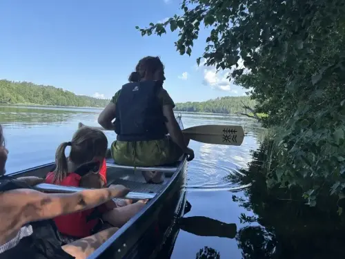 Kanoën over Zweedse meren. Samen peddelen en navigeren door uitgestrekte natuurgebieden.